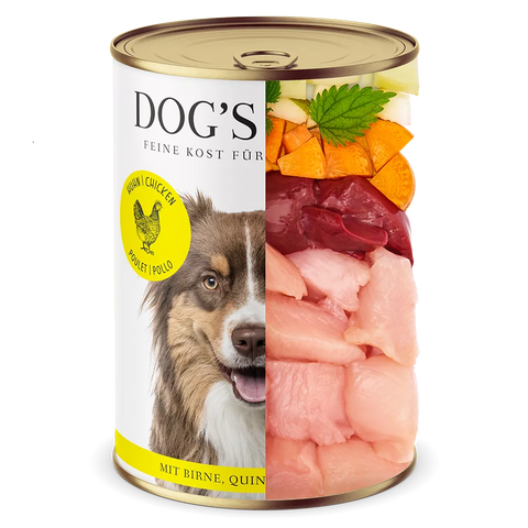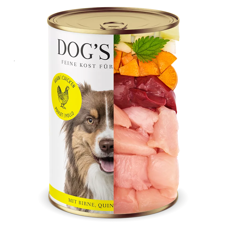 Menú natural de alimento completo elaborado con ingredientes 100 % de calidad alimentaria. Contiene un 55 % de pollo acompañado de verduras y frutas frescas. Diseñado para cubrir las necesidades nutricionales de perros adultos y apto también para perros con digestiones sensibles o necesidades especiales.